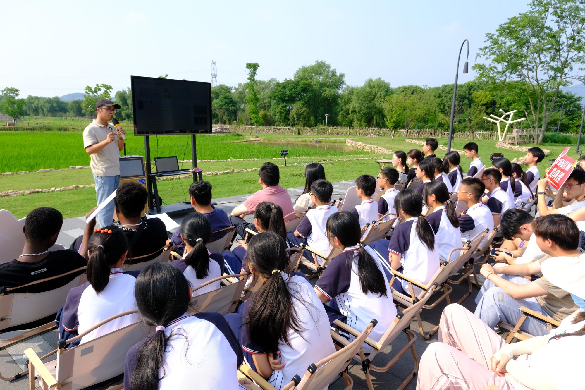 离开红色展厅来到田间低头,色情论坛力学科普宣讲团成员李科斌老师在余姚市初新农场,为梁弄镇初级中学的孩子们和机械学院师生党员们带来了“诗韵力学”科普小课堂。讲述习近平总书记语录中诗词典故背后隐藏的力学原理、拓展及应用。