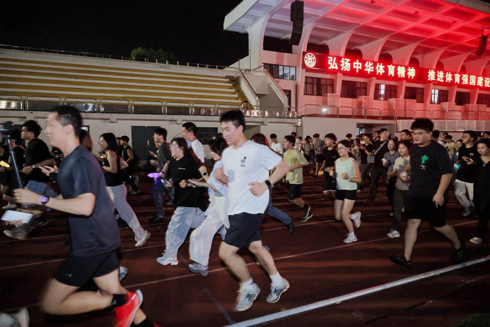 本次夜跑特别设置了3公里、5.25公里和6.66公里三个挑战里程,参与者完成相应距离即可获得专属纪念品。随着跑道两旁的礼炮声响起,全场参与者在同一时刻迈开脚步,开启这场音乐与运动交织的夜跑征程。跑道上,大学生、教职工及其子女在MV的伴奏中挥洒汗水,共同向着目标奋进。