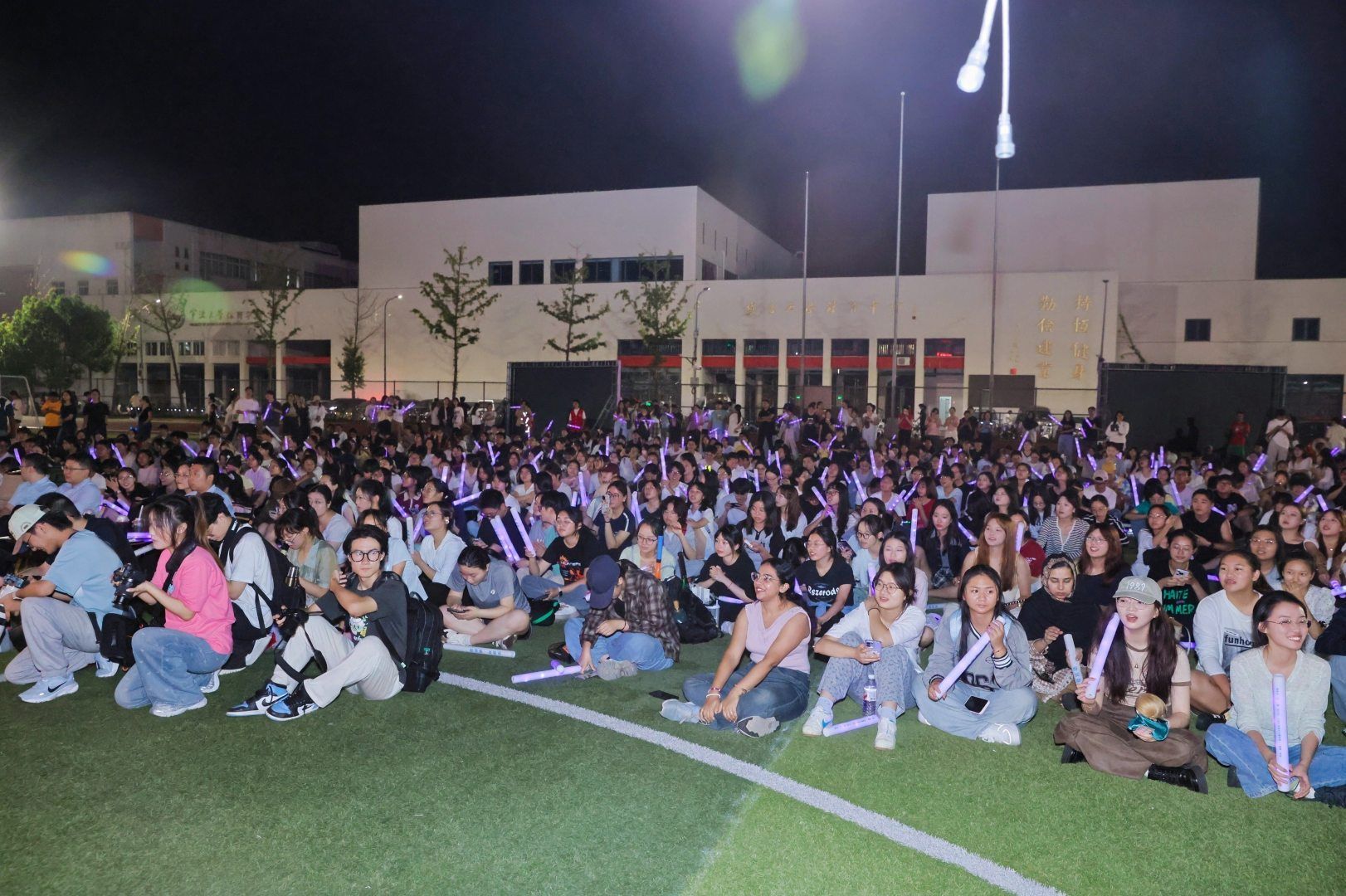 夜色渐深,但师生们的热情却丝毫未减。正式表演环节结束后,舞台为同学们敞开,只要心怀音乐热爱,便可大胆走上前,用歌声分享大家对音乐的热爱。草坪上,同学们随着MV轻声跟唱、放松身心;中心舞台前,霉霉音乐爱好者们进行了August&Exile的即兴献唱;现场的观众还跟着Love Live&Love story的旋律齐声合唱,将活动现场推向又一个高潮。